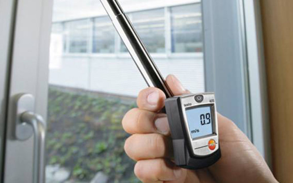由于testo 405熱線風(fēng)速儀在0~2 m/s范圍內(nèi)測量,您亦可用其測量室內(nèi)的風(fēng)速,可快速測量通風(fēng)窗的低風(fēng)速。