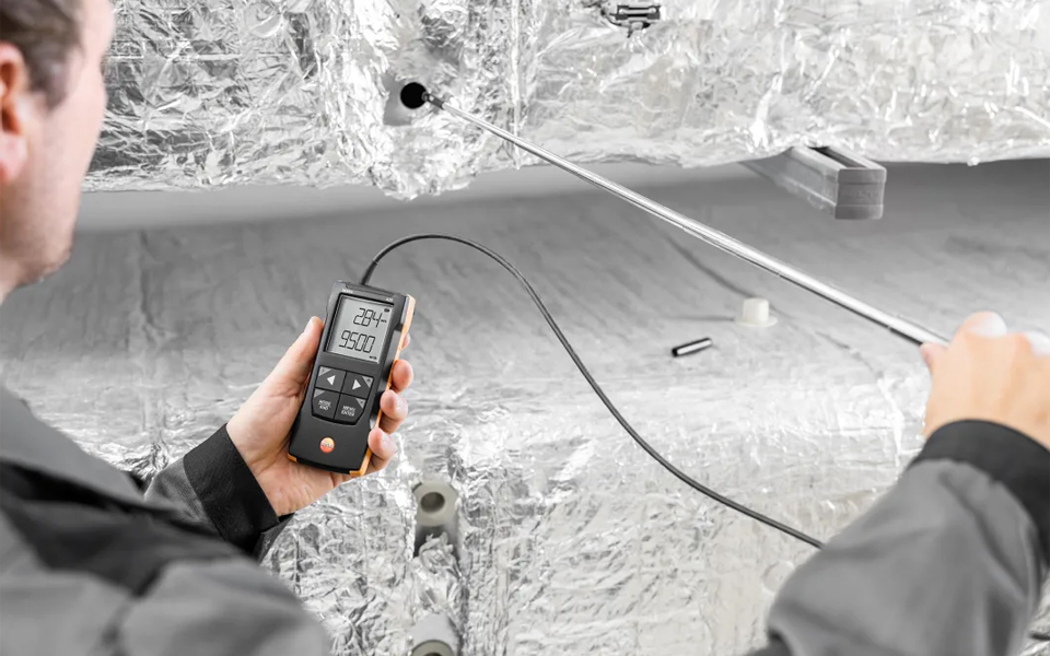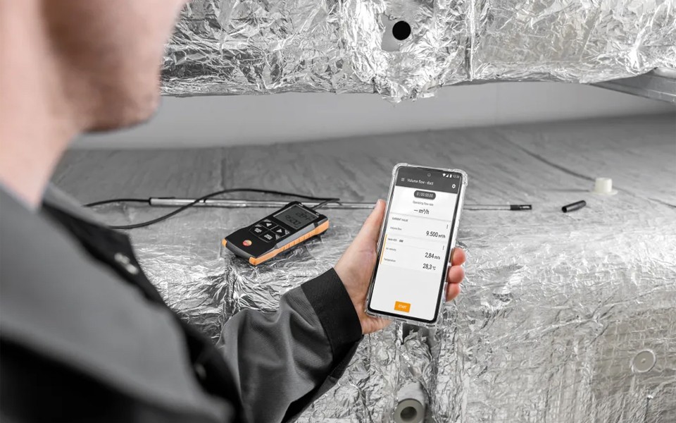testo 417葉輪風(fēng)速計(jì),快速精確地測(cè)量空調(diào)和通風(fēng)系統(tǒng)進(jìn)風(fēng)口和出風(fēng)口風(fēng)速風(fēng)量。有效調(diào)節(jié)住宅平衡通風(fēng),并使用testo Smart APP快速地記錄。